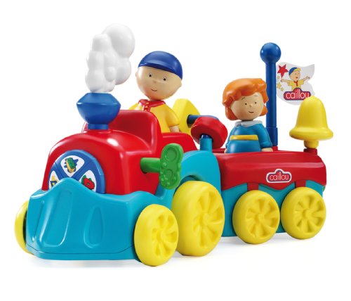 Caillou and his little sister Rosie love exploring and learning about the world around them. Now little ones can explore right along with them using the Caillou Learning Train. They'll delight in watching Caillou move up and down as the train rolls when they wind the green key. Squeeze the steam to hear it squeak. Move the colorful bead shapes along the bar. Move the bell on the detachable train car to hear it ring, and more! Includes Caillou and Rosie figures. 12 months and up.